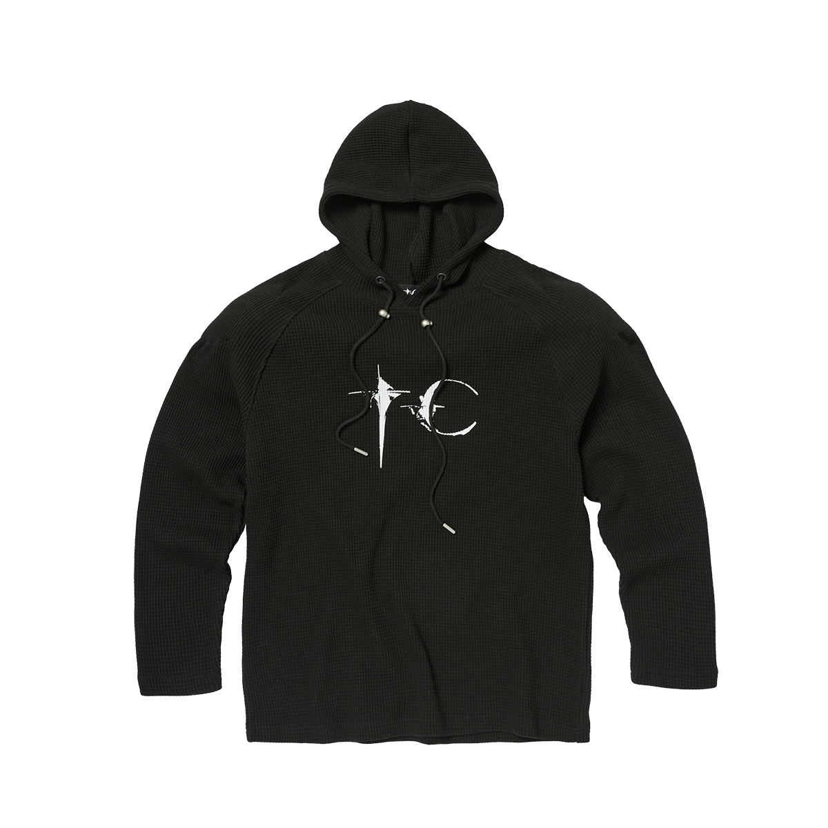 BULK SHOULDER WAFFLE HOODIE - BLACK
